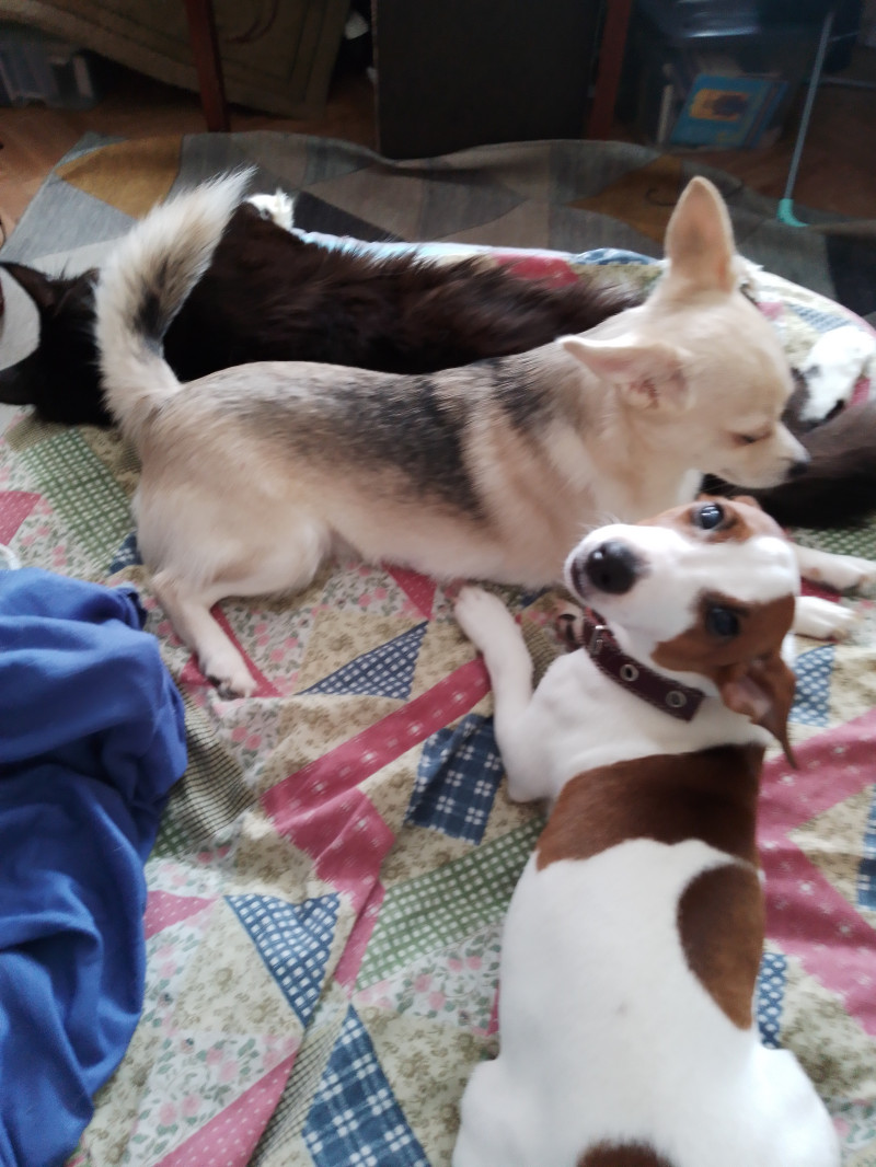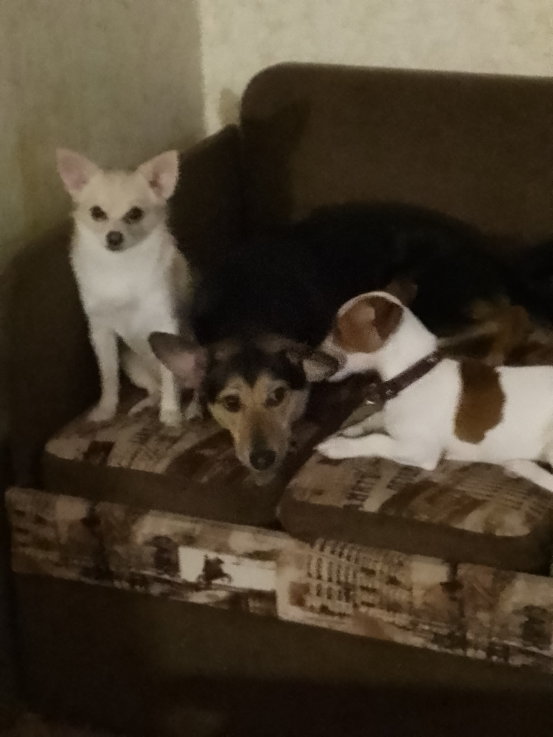 Три собаки Дворняжка похожа на мини овчарочку Рэма 2 года Чихуахуа Ричард 2 года я их почти одновременно взяла.