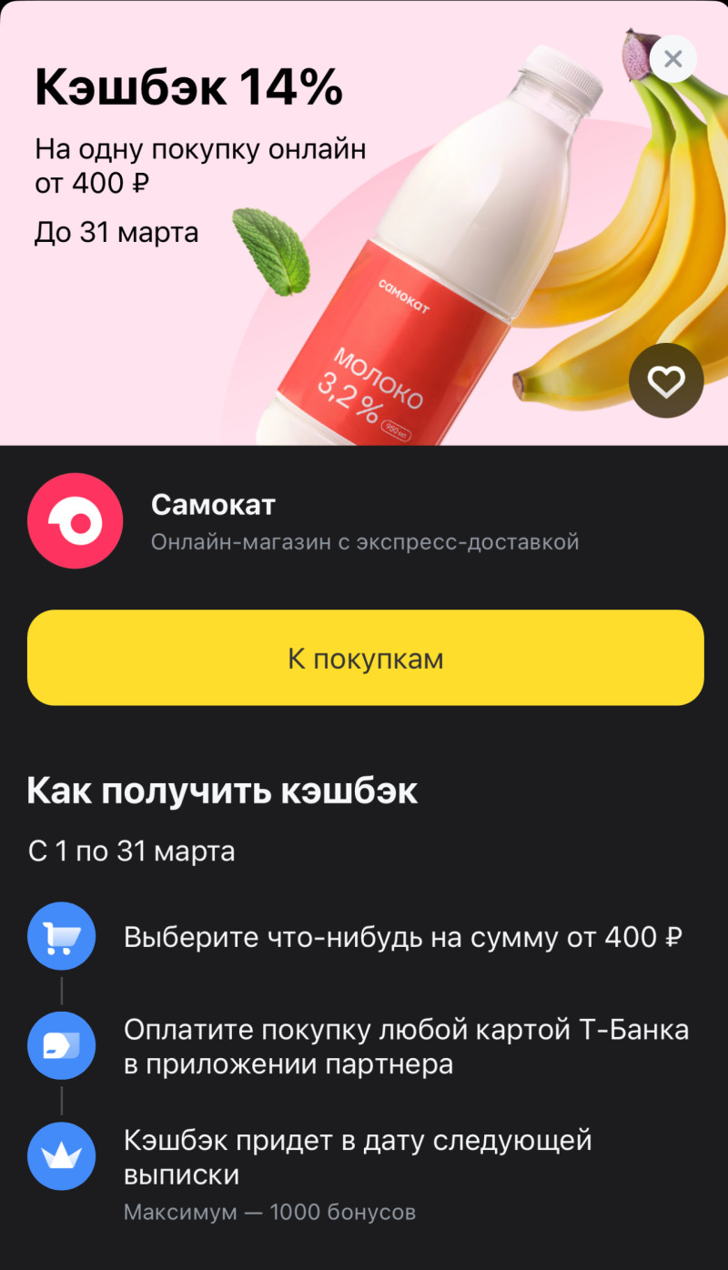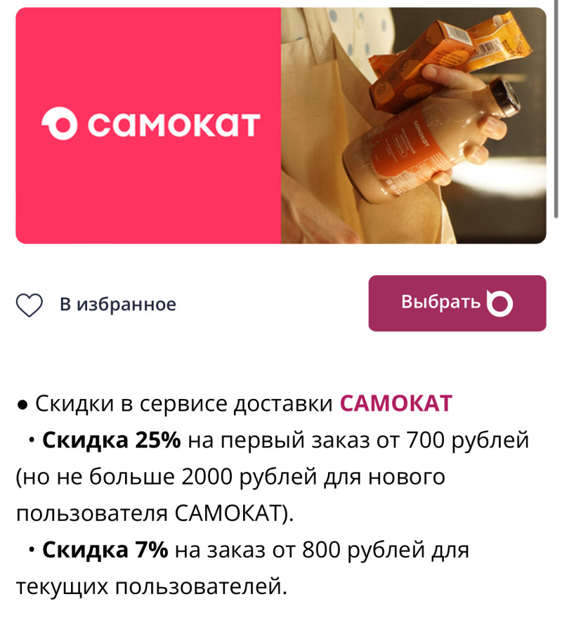 Ну вот если в самокате применить в корзине скидку на 7% и оплатить картой Тбанка с кэшбэком сегодня 14%