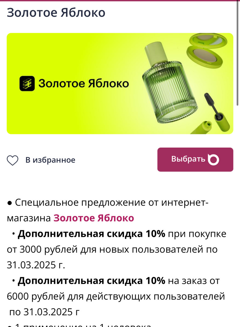 У меня сейчас кэшбэк на ЯПэй на Золотое яблоко 10% и по программе этой тоже 10%