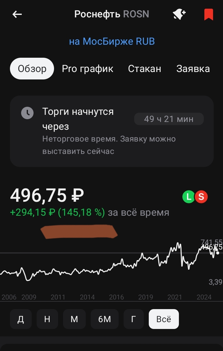 Доходность от акций Роснефти за все время: