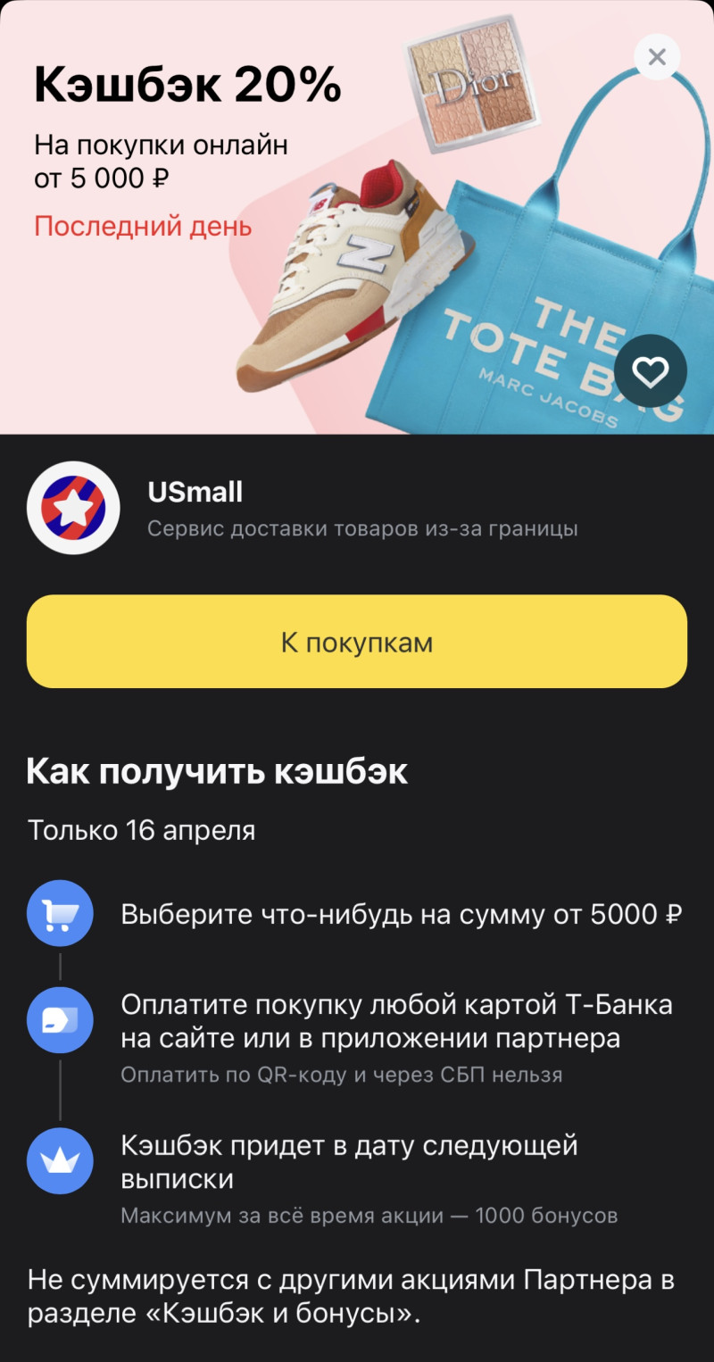 Приятный кэшбэк дня сегодня в ТБанке, воспользуюсь.