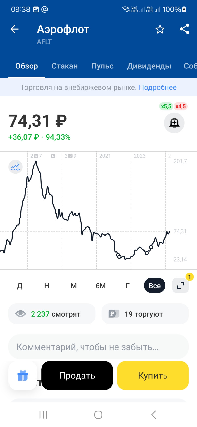 Причем Аэрофлот сейчас идет по стратегии Сбербанка. Вот если акции Сбера выросли за последние 5 лет. Аэрофлот пройдет тот же путь. Плюс инвестиции государства, это о многом говорит