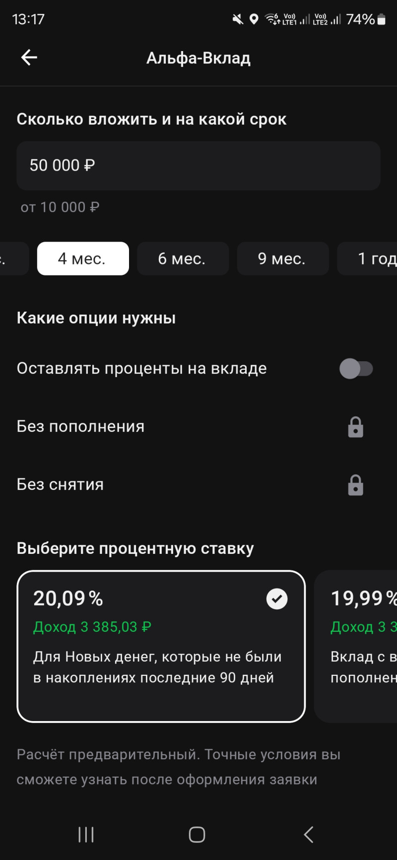 Открыла сегодня новый вклад на 4 месяца под 19,46%.