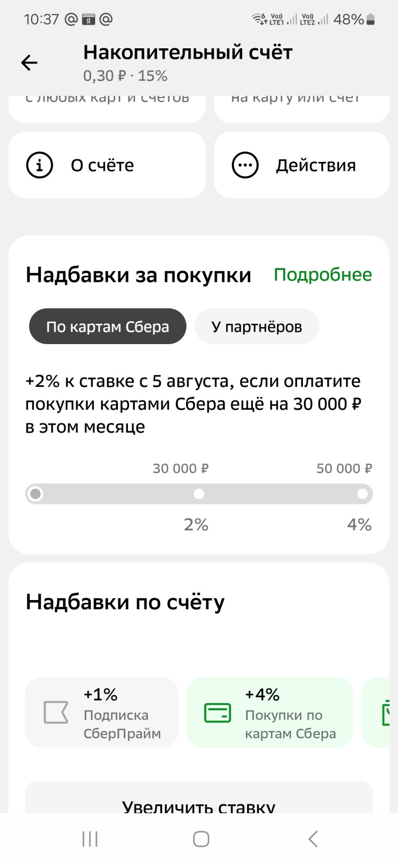 Ну нет, Тинькофф и ГПБ давали более лучшие проценты. Мне нравится со Сбером, что там нет условий, чтоб я потратила определенную сумму в месяц с карты.