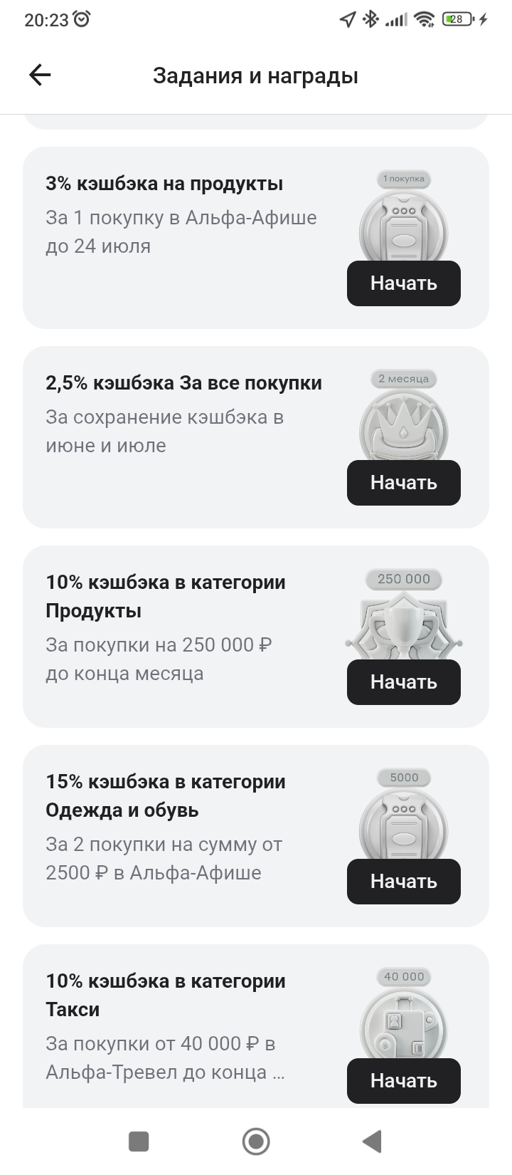 У Альфы, кстати, есть задания, выполнение которых позволяет получать дополнительный кэшбек: