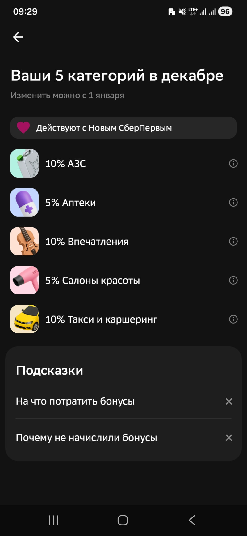 Сбер как вспомогательный, для расширения списка категорий, сбер категории на декабрь даст возможность выбрать завтра.