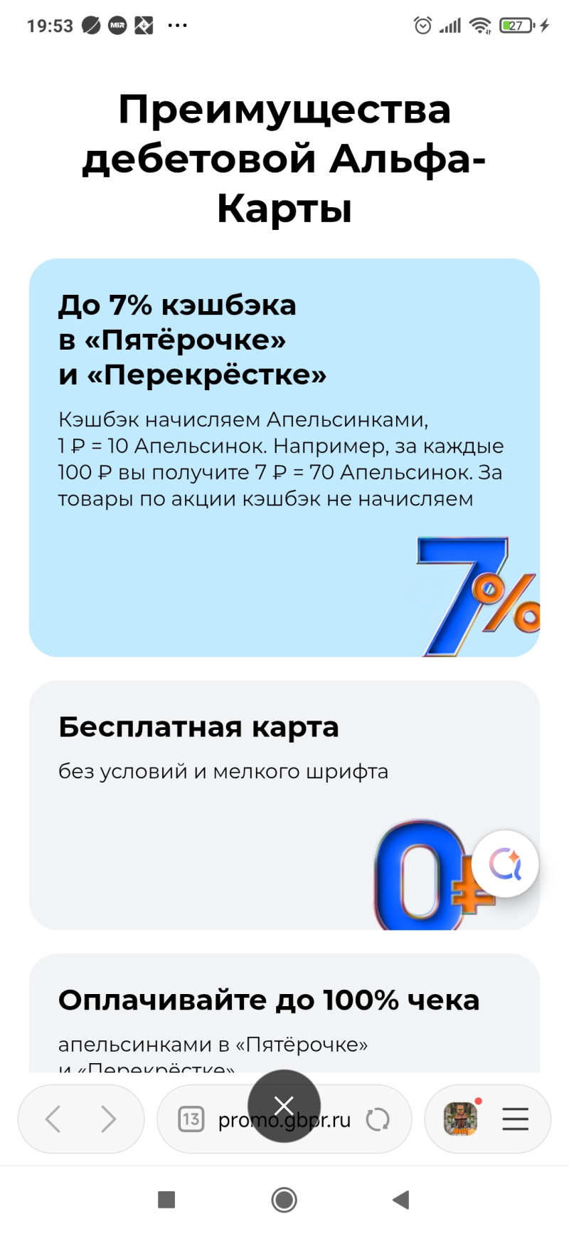 У меня подписка в X5. При оформлении Апельсиновой карты обещают повышенный кэшбек баллами.