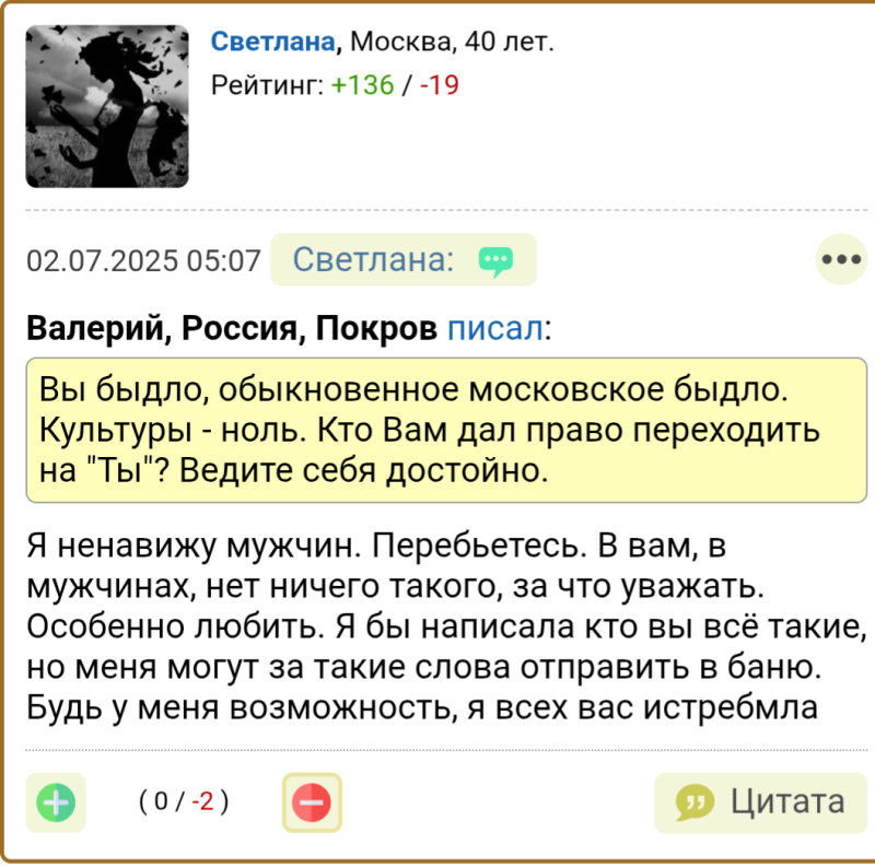 Ну что сказать, скорее да, чем нет, диагноз... Очень жаль, что здесь такие встречаются все чаще... Мужчины 40-45+ показали в этом чате кто есть кто, свое истинное лицо... Хотя еще несколько лет назад конкретный сайт позиционировался как один из самых адекватных, чтобы найти пару.
