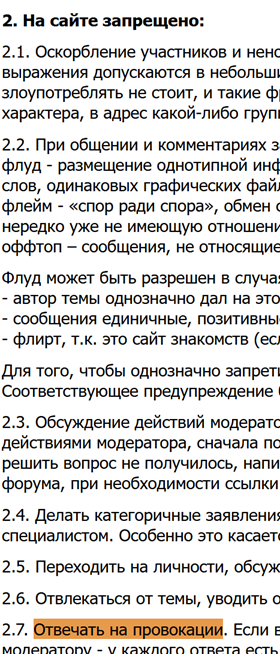 Хотя формально запрещены не только оскорбления, но и вестись на провокации
