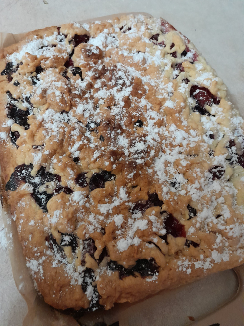 Подготовь противень, не смазывая его. Равномерно распредели тесто по противню, формируя лепешку. Выпекайв предварительно разогретой до 180 градусов духовке в течение 20 минут. Готовый корж нарежь на квадратики.