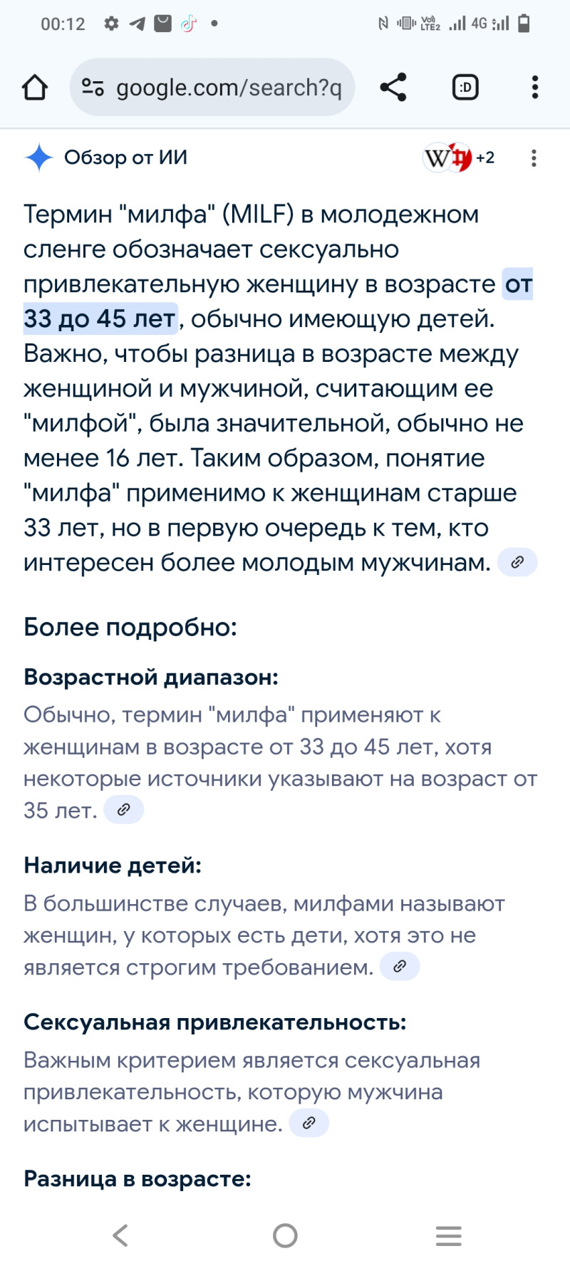 Т.е. милфа это женщина уже в возрасте, но ещё привлекательная для подростков.