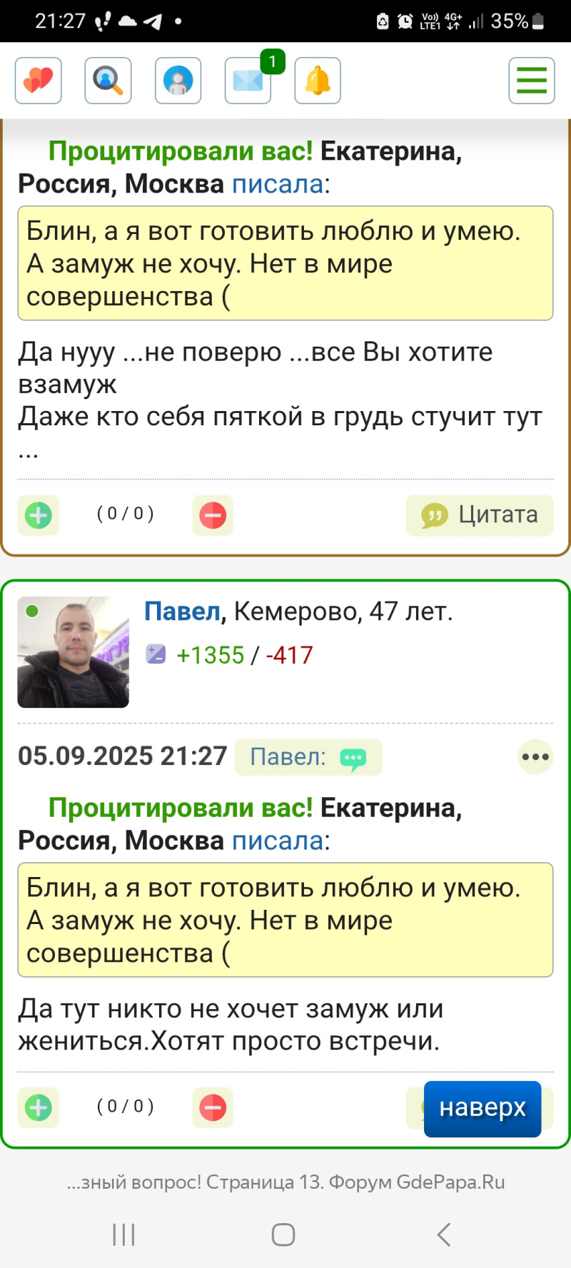 Может это правильно? Коля честный пацан , с учетом опыта транслирует свои пожелания ... Не хочет жанчинка стараться готовить для любимого, тогда туды ей и дорога .... Ты мать одну вещь правильно пойми ....не будешь готовить для отца своих детей ,будешь готовить для всяких разных, ошибаться пробовать ... Ведь еще бабушки говорили - болт на болт менять зря время терять ...мудрые были , жизнь знали с изнанки в годы лихие , когда у них 90% техники не было как сейчас по уходу за домом и кухней .