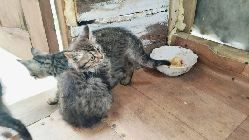 Больше живёт на улице, чем в доме, котяткам чуть больше 2 месяцев, нужно всех пристроить, тяжело их всех вести в Пятигорск в поезде! (((