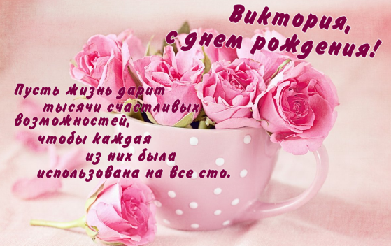 Виктория, с Днём рождения! Счастья, радости, удачи, отличного настроения! И пусть сбываются все мечты! 😃🎉🎉🎉