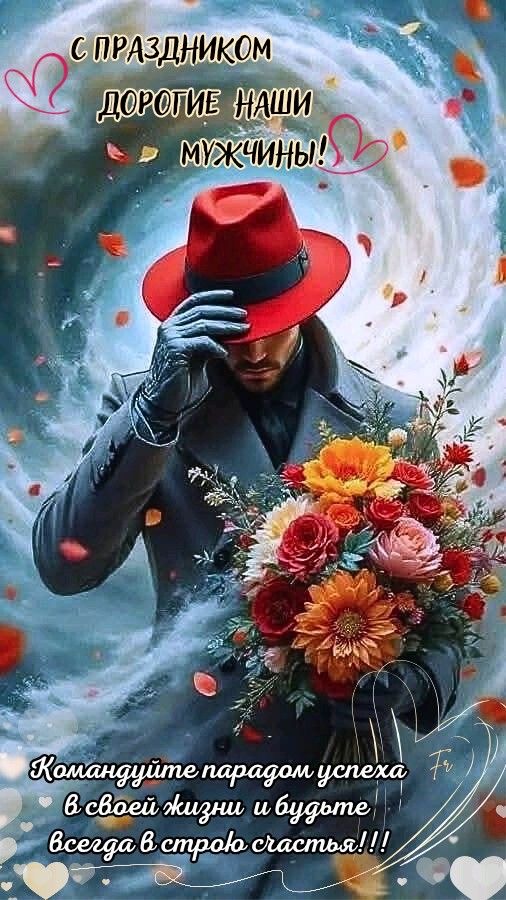 Пусть этот праздник станет символом мужества, силы духа и благородства, которыми обладаете именно ВЫ! Желаю Вам успехов во всех начинаниях, счастья и благополучия. Пусть Ваша жизнь будет наполнена радостью, достижениями и гордостью близких людей. Будьте счастливы, любимы и уважаемы теми, кому дороги!
