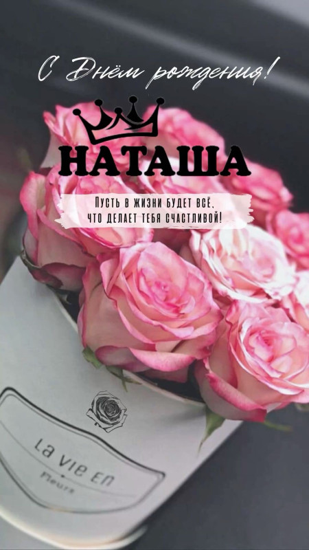 Наташенька с днем рождения! Хочется пожелать тебе в этот прекрасный день только всего самого светлого, доброго и радостного. Пусть тебя всегда сопровождает удача и только позитивные эмоции. Пусть хлопоты будут только приятными, а слезы ? от радости. Пусть все задуманное свершится и исполнятся все самые заветные мечты. Женского счастья и мирного неба над головой!