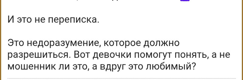 1. Повысить уничтоженную самооценку 2. Показать, что кто-то хочет со мной общаться и любить меня, кого я даже не знаю 🤷‍♀️ И это не переписка. Это недоразумение, которое должно разрешиться. Вот девочки помогут понять, а не мошенник ли это, а вдруг это любимый?