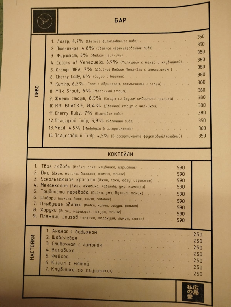 Дата: 15.03.2025 (суббота) Город: Россия, Москва Место проведения: Спартаковская площадь, 16/15с2, Москва (Метро Бауманская) Время начала: 18-00 Статус: назначена и состоится Друзья, и снова здравствуйте! Предлагаю встретиться вновь для прекрасного дружеского времяпрепровождения. На сей раз бар называется «Хиросима, Моя любовь» Забронирован стол, который рассчитан на 20 человек, это отдельная комната на 2 этаже. На 2 этаже есть отдельная барная стойка, поэтому заказываем напитки там,