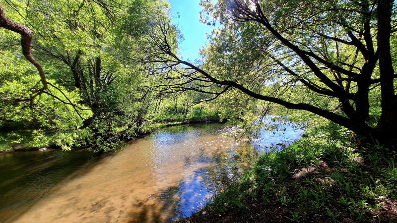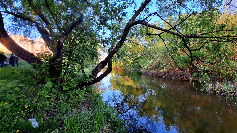 Идти в сторону туалетов вдоль реки!