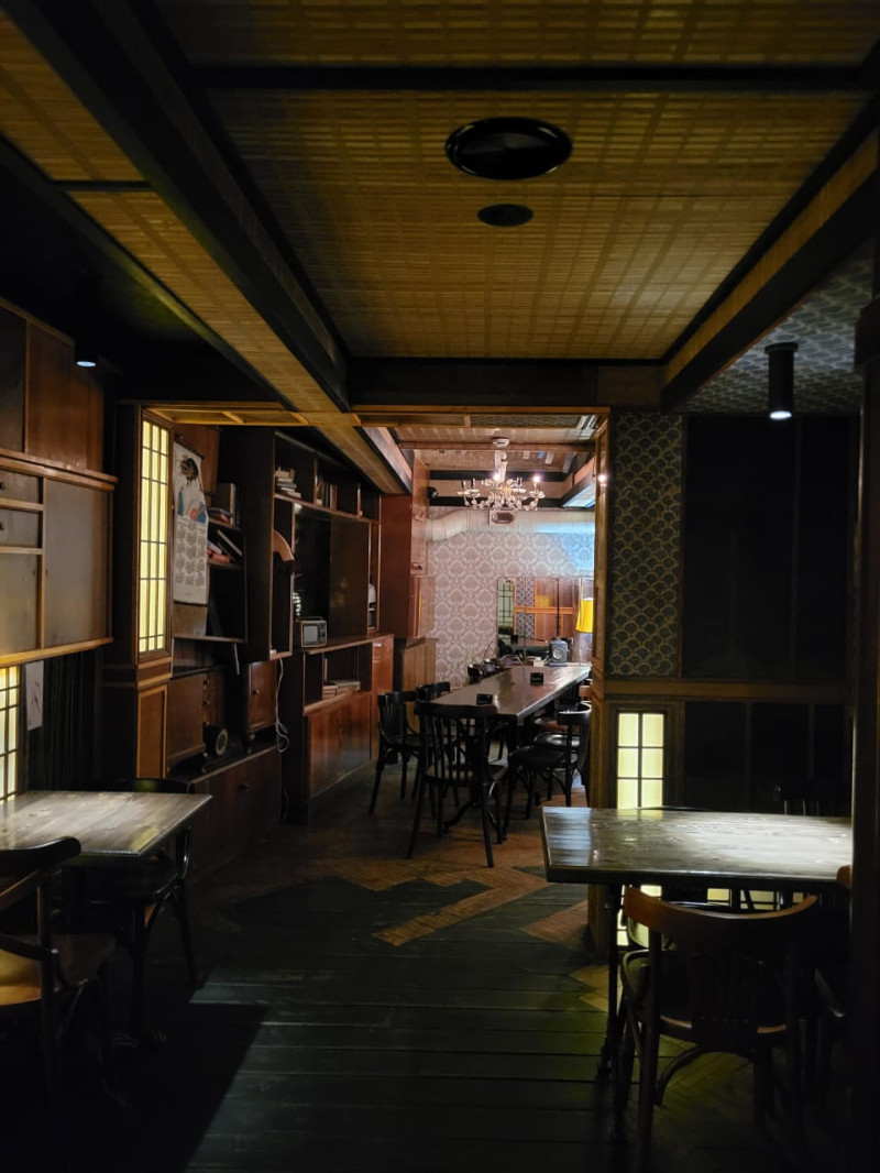 Забронирован стол, который рассчитан на 20 человек, это отдельная комната на 2 этаже. На 2 этаже есть отдельная барная стойка, поэтому заказываем напитки там, сразу расплачиваемся и забираем, заказанную еду приносят за стол.
