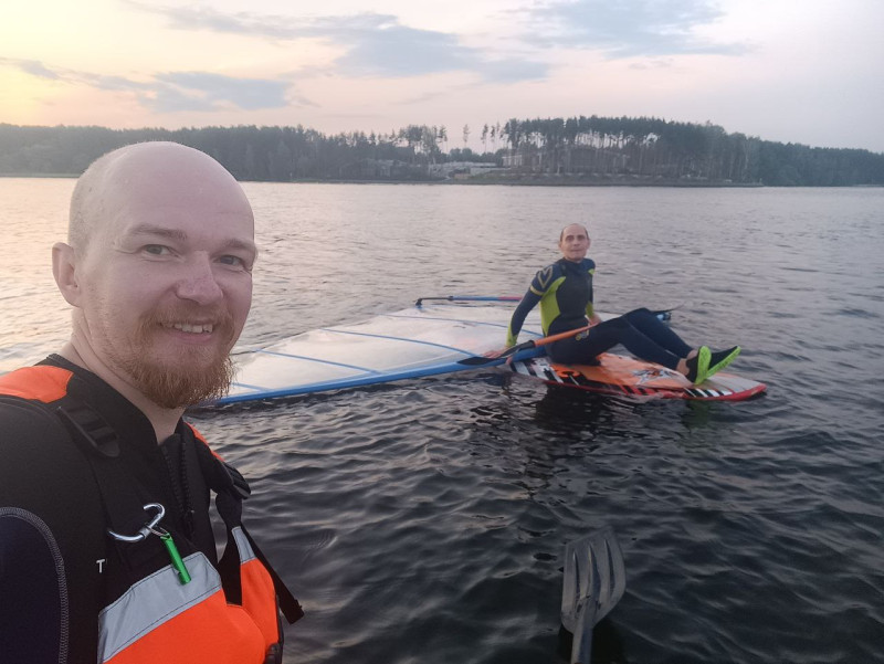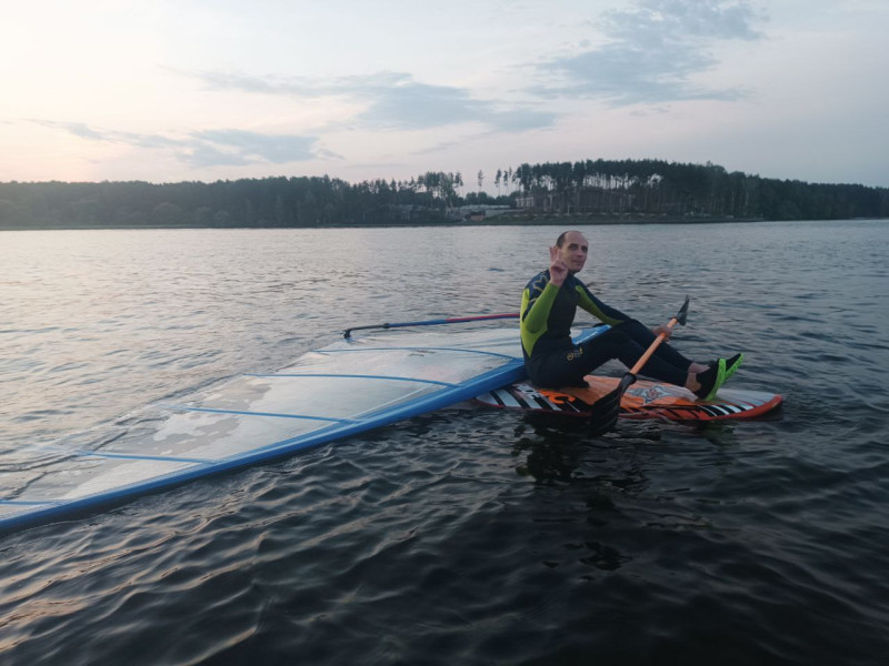 Я со своим сапом, ещё есть пара досок, как сап, можно взять в прокат, если будет ветер можно на виндсёрфинге с парусом попробовать, на Машине подъезд практически к воде, городской округ Мытищи
