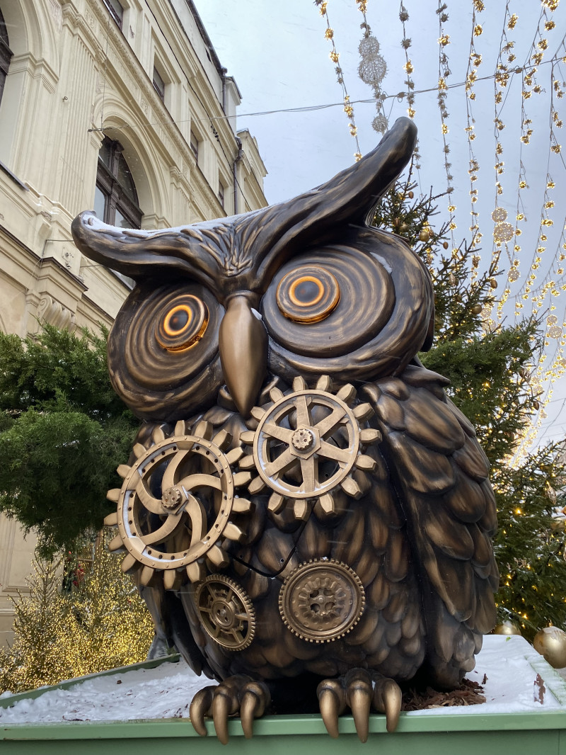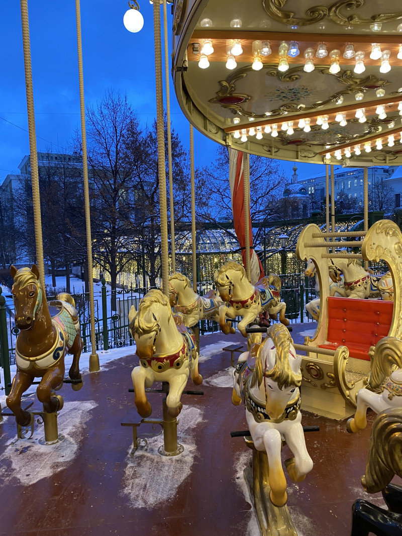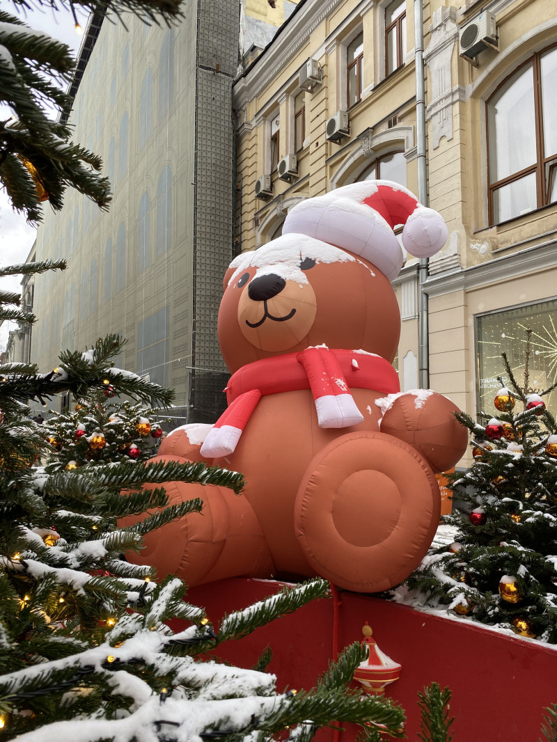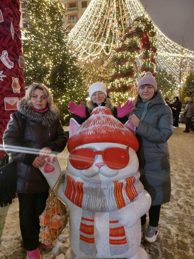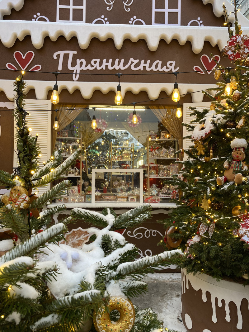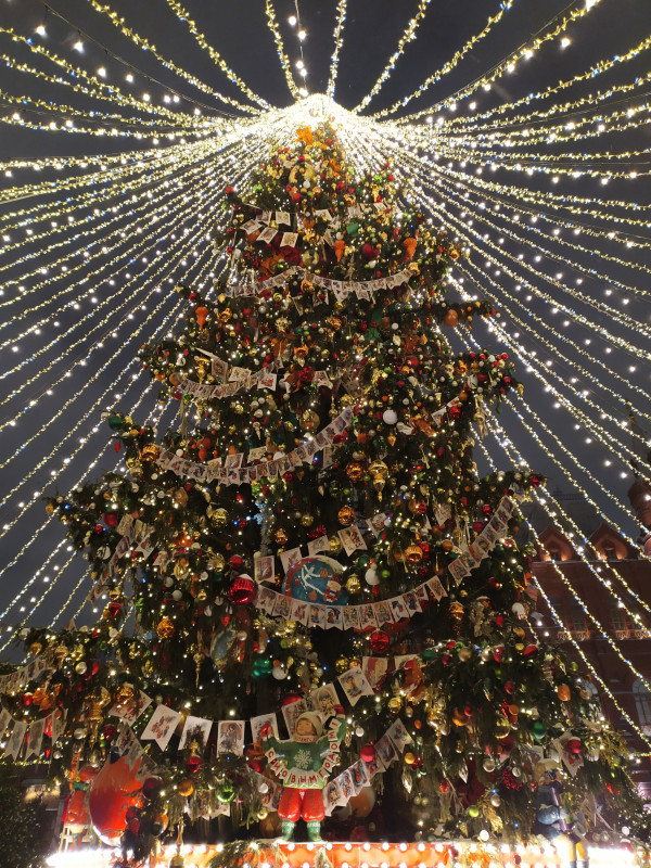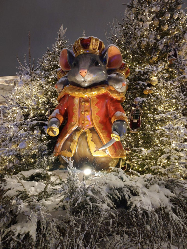 Встречаемся у метро Кузнецкий Мост и идём мимо вязаного шара, спускаемся вниз к ЦУМу. Фотографируемся с мишками и лошадками. Рядом с гигантскими коньками переходим дорогу. Доходим до Камергерского переулка и попадаем в пряничный город. По Тверской поднимаемся к Тверской площади, любуемся ярмаркой расписных шаров. Дальше идём вниз по Столешникову переулку, украшенному в конфетно-зефирной теме. Выходим к Театральной площади с фигурами из Щелкунчика. И прибываем на Манежную площадь.