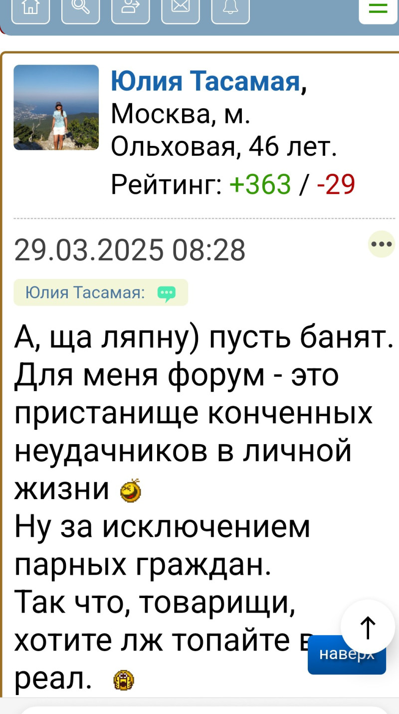 Привет всем) У меня вопрос. Как у некоторых так получается. Сначало обсирают человека, такой сякой, типа я с тобой на одном поле с... ь не сяду.. Потом раз и с этим человеком идут в боилинг играть и в засос целуются на форуме?))
