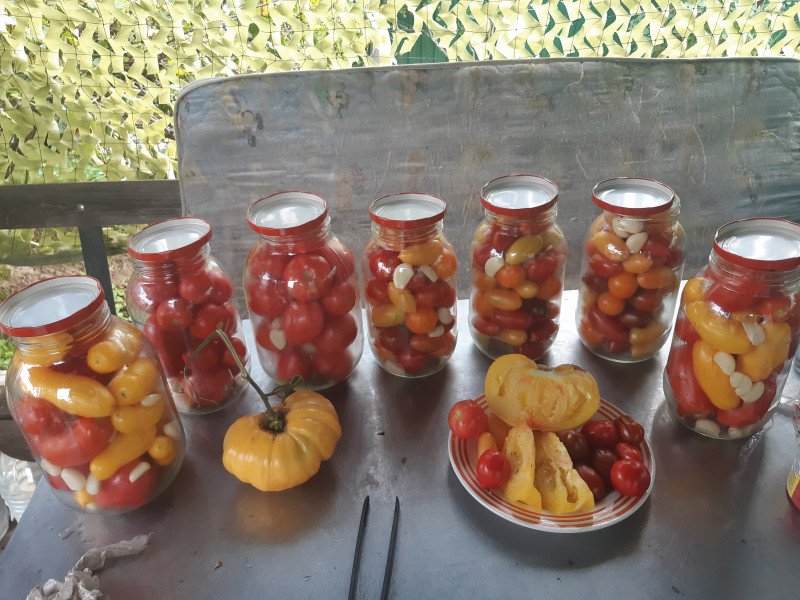 Я тоже корнешоны закрываю . Но я вообще "приболела" помидорами. Сама их не очень ем сам процесс нравиться . Каждый год себе слова даю ,что буду скромнее в своём хобби не получается. Как итог тележками в лес кабанам вывожу в конце сезона излишки и соседи все ссыты На фото конец сентября последней сбор для кабанов
