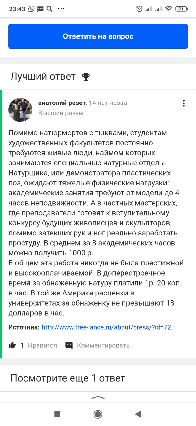 Как раз именно поэтому такая стоимость была этих работ, потому что скандальная известность. Чего бы им просто на рисовалось, если она молода, хороша собой. 14 лет Хотя не исключено что историю это специально придумали для ажиотажа. Но то что за 14 лет она с мужем никуда не переехала, а оставалась жить поблизости, уже говорит о том, что она тоже была заинтересована. Натурщицам немного платят. Труд тяжёлый. И неизвестно будут ли работы художника популярны когда нибудь. Через 14 лет только в
