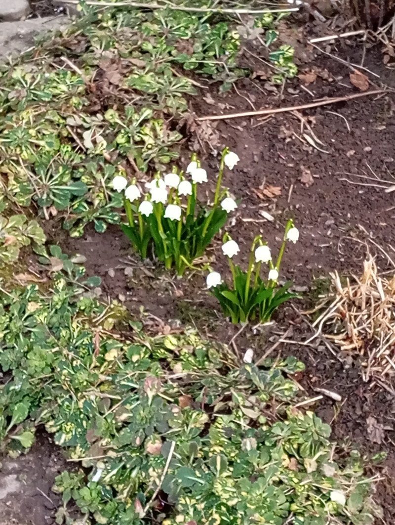 Вышли прогуляться, уже подснежники у домов цветут вовсю