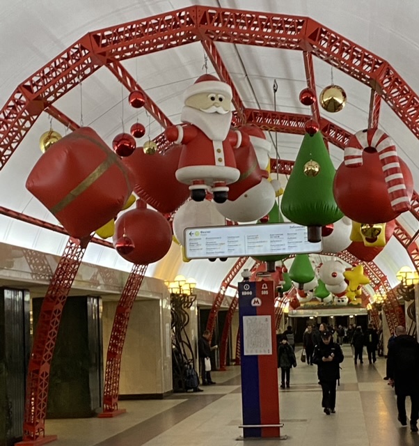 Танюша помнишь как прогулялись по скверам до Трубной, посмотри как красиво празднично украсили зал такой станции в метро.