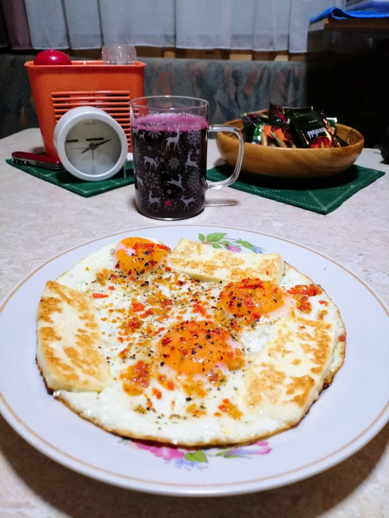 На воде чёль ? У меня глазунья с сыром Халуми.