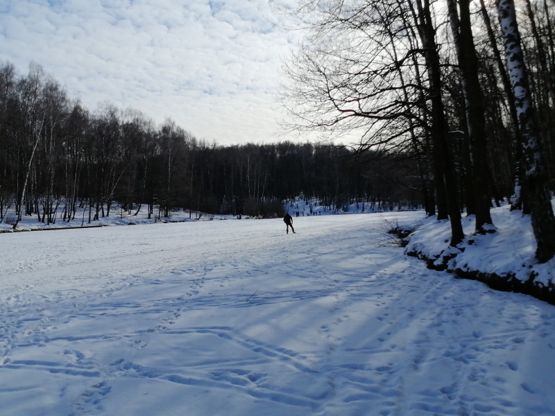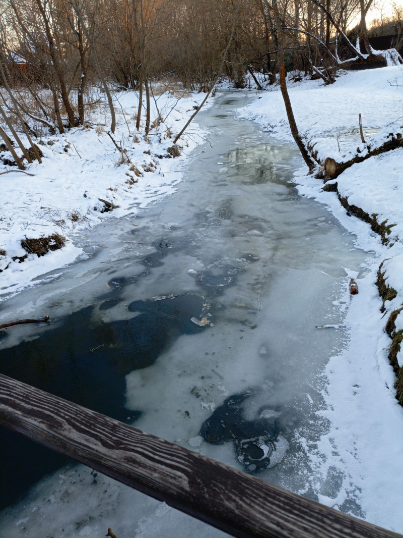 Дорожка от станции к дому. Речушка и чувствуется уже весна.