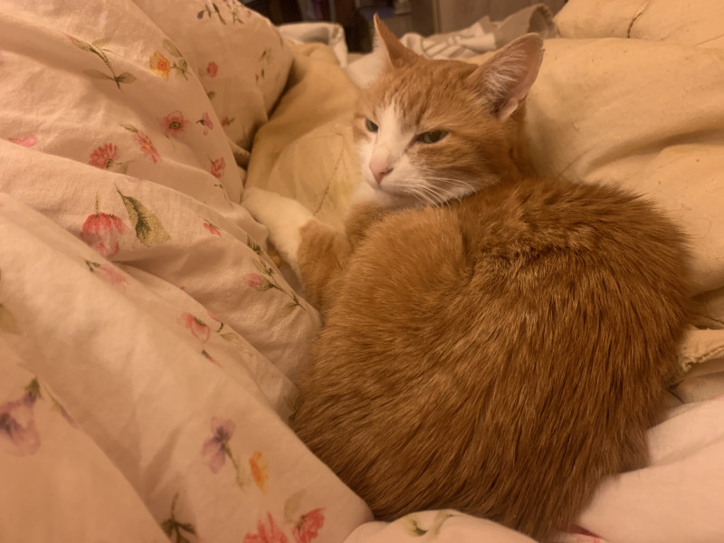 потом выяснится ,что она с котами в постели спит