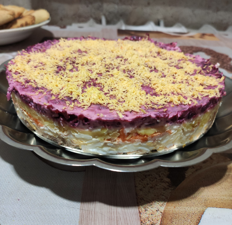Кстати, нормальный был салатик "скумбрия про шубой" Съели уже конечно, только фото осталось) Надо форму раздвижную купить поуже, чтобы слои были повыше