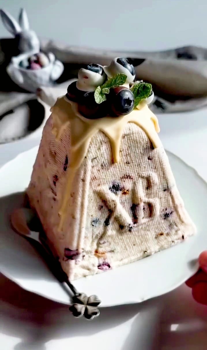 4. Подготовленную пасочницу застелите марлей, переложите массу в пасочницу, заверните края марли прикрыв донышко пасочницы, поставьте груз, и оставить на ночь в холодильнике.