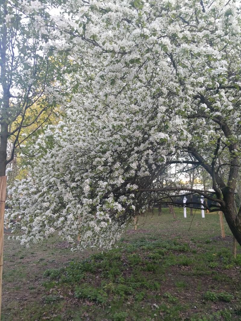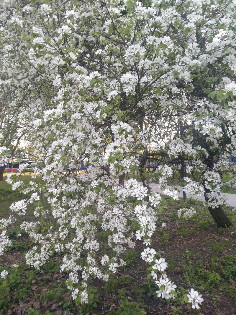 Наш район до 70-х относился к Тимирязевской сельхозакадемии. Вместо домов были опытные плодово -ягодные поля. Потом пришла стройка, повырубали и построили дома. Но остатки былой роскоши ещё растут то тут, то там. В парках, дворах. У нас прям под окнами вишня цветет. У соседнего дома яблони. )))