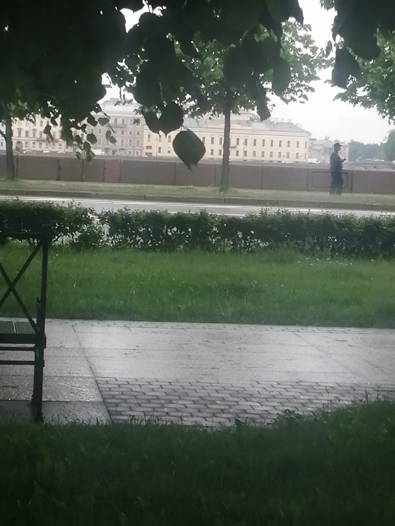 А это сейчас. Вид из окна на дождливую Невскую набережную. Сейчас позавтракаем, возьмём зонт и пойдём гулять.