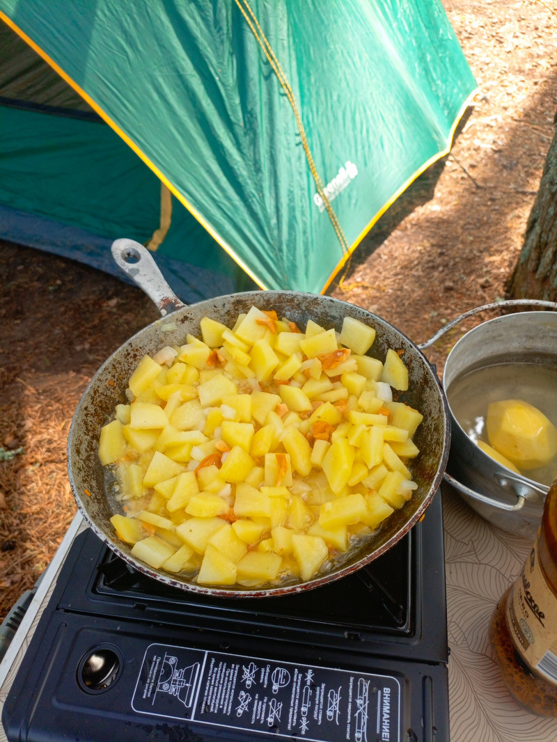 Хотел сделать на гриле линя, но из за дождя пришлось жарить на сковородке.