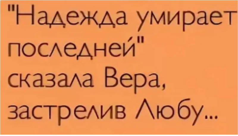 Надежда умирает последней, сказала Вера и застрелила Любовь)))