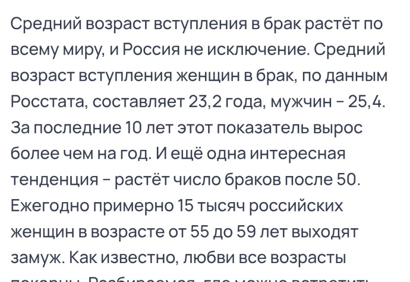 Нам ползти на кладбище?))) Написано, про повторные браки, как чаще происходит. В 50 единицы женятся, наверное...