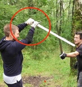 выглядит как хват для колющего) и можно ещё парировать при этом,