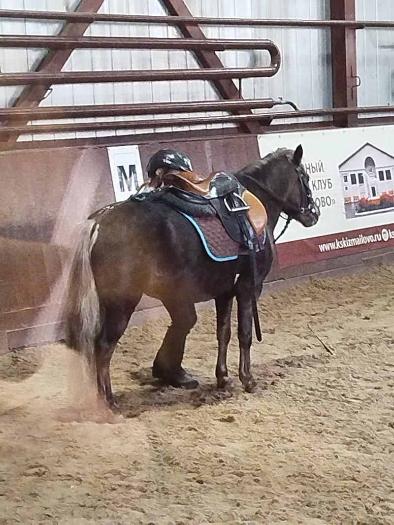 Старший, у меня была еще лошадь своя, отказывался вообще верхом ездить.. Средняя боится, да и я боюсь ее повредить... А вот младшая выбрала свою стезю.