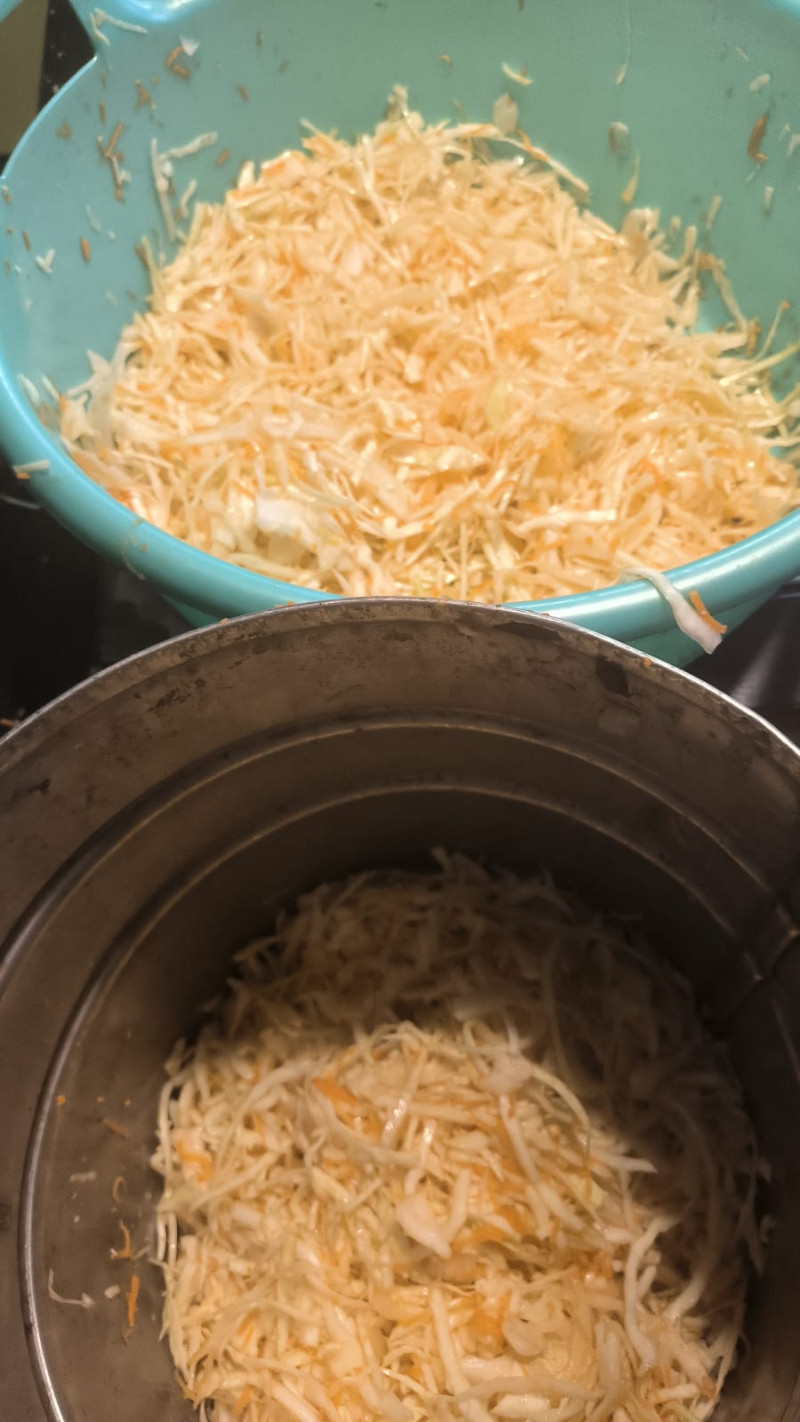 Отличная капусточка выйдет, судя по всему. У меня вкусная получается, но последнее время мама с папой солят и нам дают. Пацаны любят. Чуть сахарку, лучок, маслице... Ммм