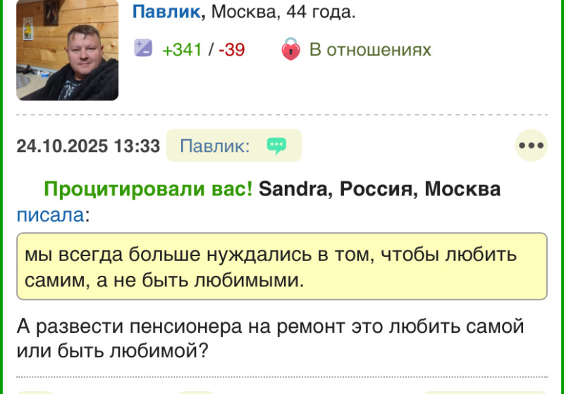 А вдруг расскажет что хорошо живётся когда отношения получаются с женщиной обожаемой и желанной, тогда и старость в радость а не в тягость. Что то так хочется позитивчика в общаге.