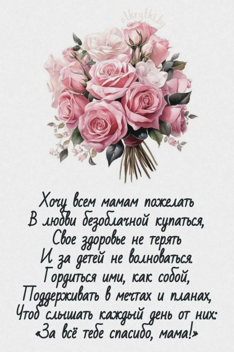 Желаю как можно чаще слышать такие простые, но такие важные слова: «Мама, я тебя люблю!». И неважно, произносятся они с большой сцены, в школьном актовом зале или в уютной домашней обстановке — именно в этих моментах и рождается истинный смысл жизни…