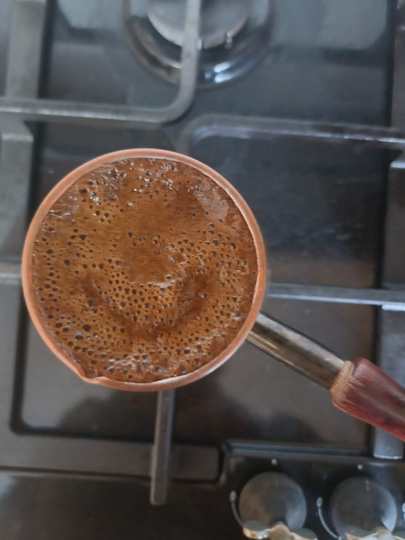 Доброго дня! Чет посетила меня мысль, что в последнее время я скучно как-то живу. Наверное нужно чё-то исполнить, кофе даже в турке улыбается. 😁
