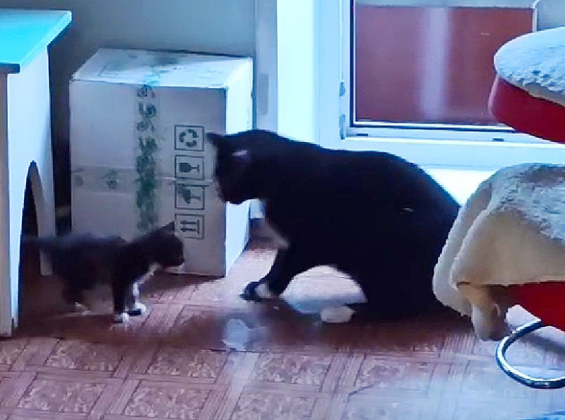 Пусечка Танина встречается с котом, который просит ласки..
