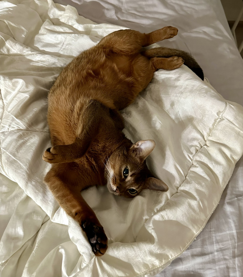 Я абесинку взяла потому что британчик вообще не давал себя трогать, не то что жмякать 🤦🏼‍♀️ а на нее посмотрел как она ластится и ревновать стал 🙈 теперь приходит, ложится и лапой меня, чтоб гладила 😄