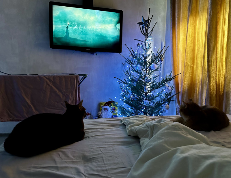 Моим четта ёлка вообще не интересна, лежат себе, телек со мной смотрят